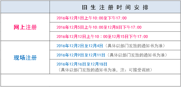 2017年第一学期旧生注册网上支付已经结束,还没旧生回读成功的家长可在2016年12月16日下午17:00至12月18日下午17:00(上课时间)到科目具体部门现场缴费,谢谢!