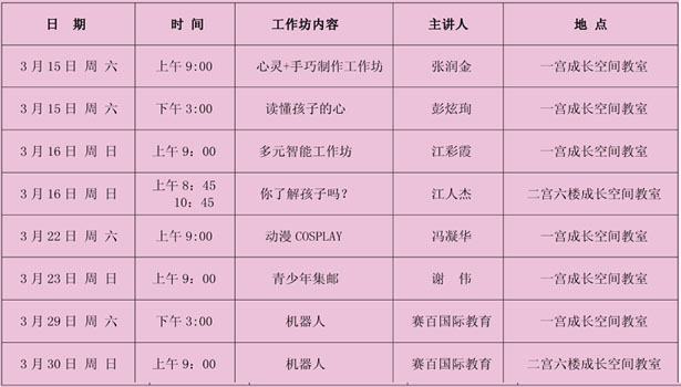 具体活动安排,可留意《都市人·成长》杂志、少年宫网站以及橱窗上的公告。