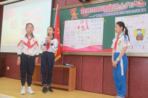 为更好的帮助少年儿童感知新时代,深入学习党的十九大精神,帮助广大少先队员牢记习近平总书记的教导,努力成长为担当民族复兴大任的时代新人,2018年4月18日,广州市少先队理事会和番禺市桥实验小学的师生近200人参加了“红领巾如何宣讲十九大——红领巾议事堂走进番禺市桥实验小学”活动。