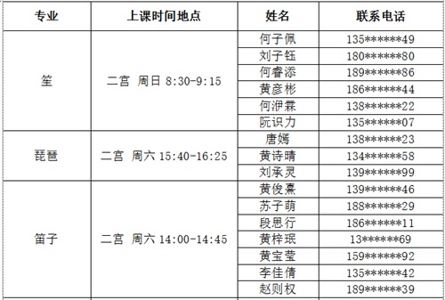 关于文艺培训部2018年第一学期国乐升班录取名单的通知