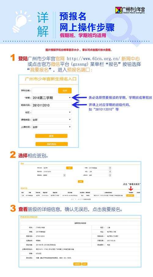 ●关注广州市少年宫官方微信(微信服务号:gzssng),在微信平台上直接预报名;