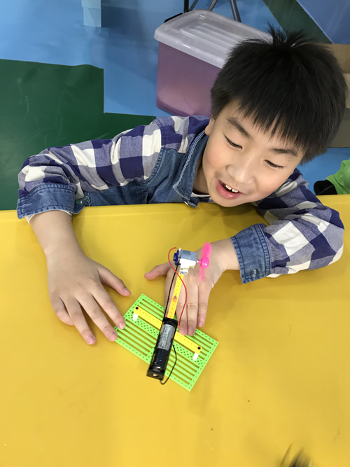 本课程内容丰富,涵盖力学、电学等多学科知识,结合生活中的科学常识,让学生们自己动手制作利用声、光、电动、红外线感应、线操控等形式的科技作品。结合STEAM的跨学科理念(科学、技术、工程、艺术、数学),以Project-based learning的学习方式,在教学过程中传递创客的思维、态度、技能和品质,培养学生的动手能力、科技认知、团队协作、创意思维和分享精神。