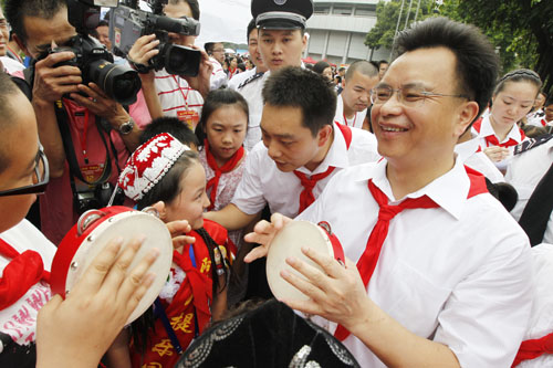 全国少工委副主任孙俊波向广州市少年宫主任杨俊东颁发了中央文明委授予的“全国未成年人思想道德建设工作先进单位”牌匾,这也是该奖项首次落户广州。远道而来的新疆疏附少年儿童代表和广州少年儿童欢聚一堂。