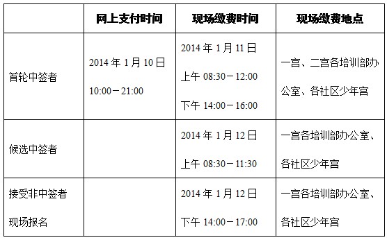 最后请家长们注意,1月8日抽签结束后,我们将在1月9日通过短信陆续下发抽签结果。因通信原因没能收到短信的家长,也可通过登陆少年宫官网www.www.fsjzzx.com查询。中签家长可在1月10日通过网上支付完成学位的注册(目前仅接受一宫、二宫课程),或者在1月11日亲临各少年宫现场注册。没能中签但获得候选顺序号的家长,尤其是候选号比较靠前的,请密切留意1月11日当晚的候选结果短信。当报读的课程出现学位剩余时,我们将根据剩余量向相应靠前候选号的家长发送候选中签短信(家长也可在当晚通过官网查询候选结果),请家长根据短信内容在1月12日上午亲临各少年宫现场报读。再次提醒,没能在首轮中签或候选中签的家长,均请不要在11日当晚在少年宫现场连夜排队,因为学位是优先让中签学员报读的,只有在首轮中签及候选中签学员均放弃学位的情况下,所有的剩余学位才会在1月12日中午重新对外发布,敬请留意。