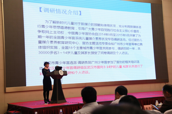 (中国青少年宫协会儿童媒介素养教育研究中心主任张海波介绍全国调研的情况)